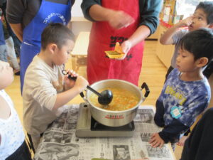 10月28日(昨日),JA青年部の方々と年長組で料理をしました。