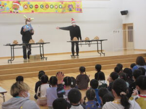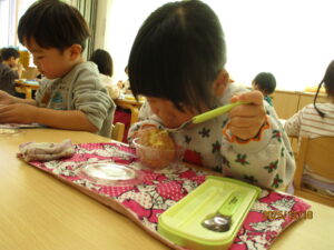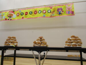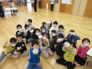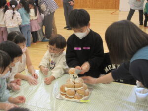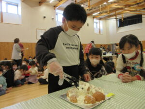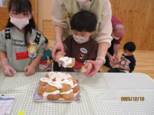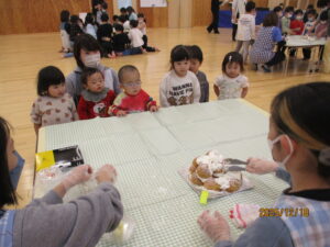 シュークリームはすがの商店さんに作っていただき,園児たちはそのにおいに大興奮でした。