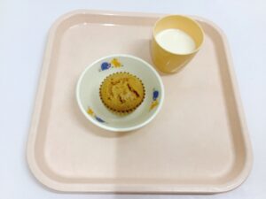 3時:黒糖蒸しパン・牛乳